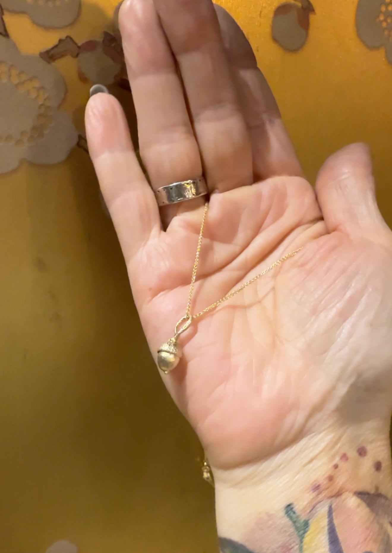 The acorn in silver comes delicately wrapped in tissue in a luxurious cream and gold box with gold foil print. All my jewellery is hand made my me here in my studio and I am a goldsmith and artist of 15 years.